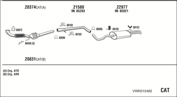 VW GOLF IV Variant (1J5) 1.9 TDI - Výfukový systém - kompletní od 9/2000 do 6/2006, 1896 ccm, 74 kW, 101 hp, ATD, AXR, kombi