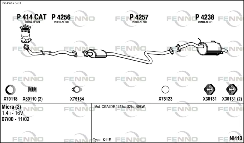 NISSAN MICRA II (K11) 1.4 i 16V (AK11) - Výfukový systém - kompletní od 9/2000 do 2/2003, 1348 ccm, 60 kW, 82 hp, CGA3DE, Šikmá zadní část