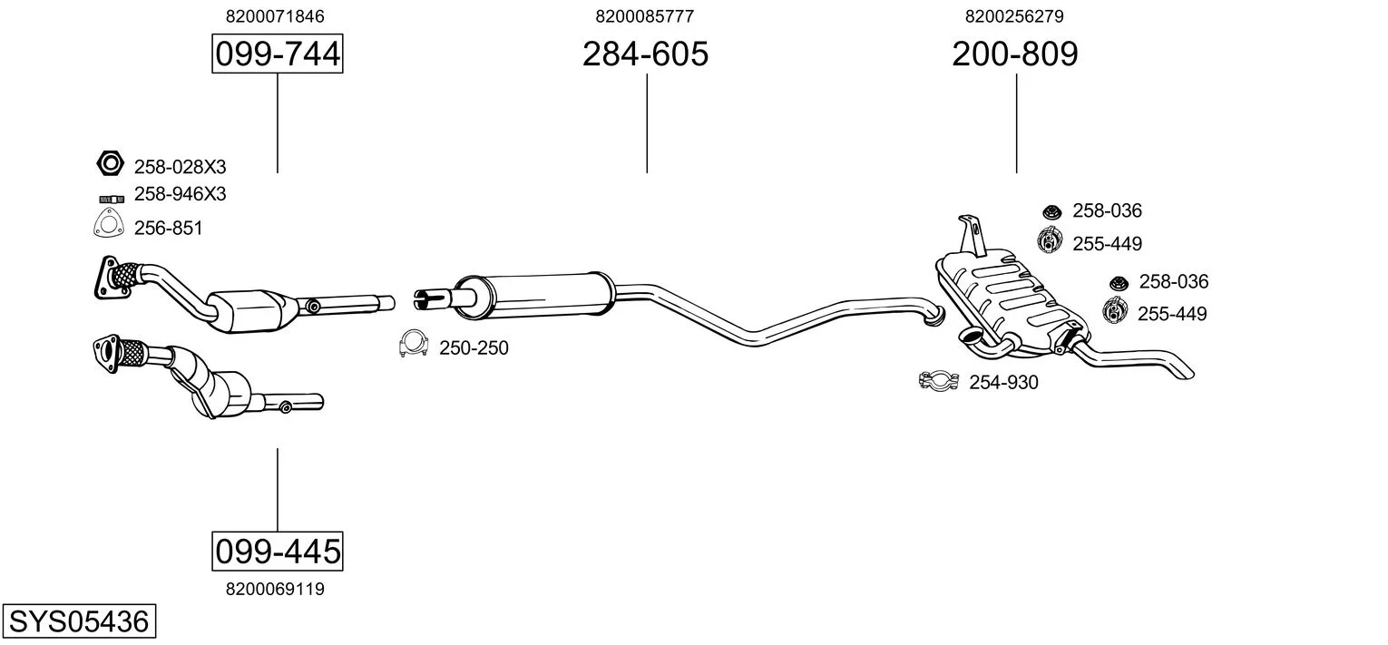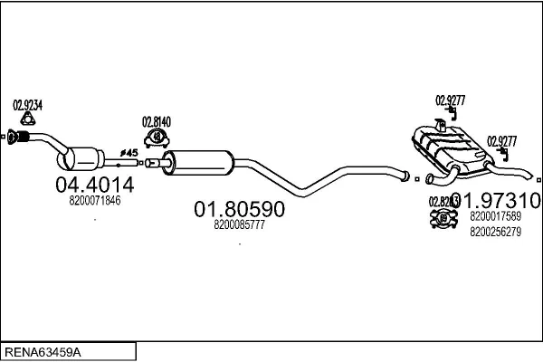 RENAULT LAGUNA II (BG0/1_) 1.6 16V (BG0A, BG0L) - Výfukový systém - kompletní od 3/2001 do 5/2005, 1598 ccm, 79 kW, 107 hp, K4M 710, K4M 714, Šikmá zadní část