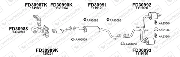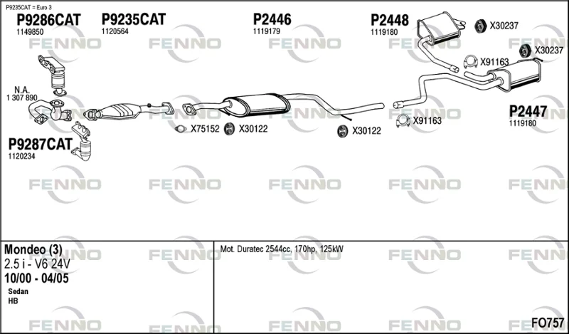 FORD MONDEO III (B5Y) 2.5 V6 24V - Výfukový systém - kompletní od 10/2000 do 3/2007, 2495 ccm, 125 kW, 170 hp, LCBD, Šikmá zadní část
