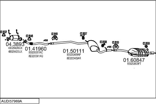 AUDI A4 B6 (8E2) 2.0 - Výfukový systém - kompletní od 11/2000 do 12/2004, 1984 ccm, 96 kW, 130 hp, ALT, limuzína