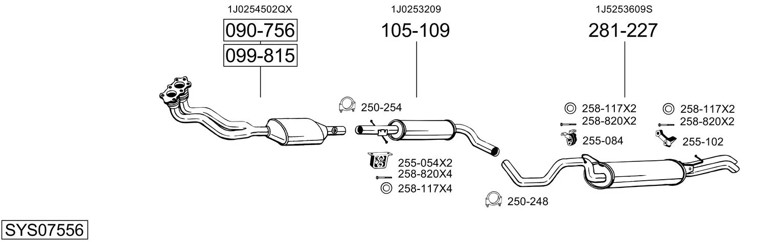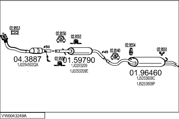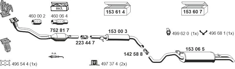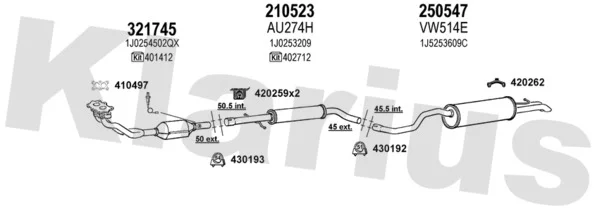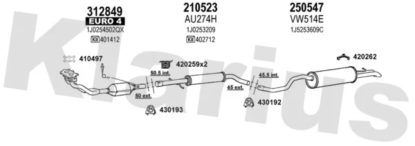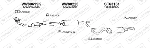 VW GOLF IV Variant (1J5) 1.6 - Výfukový systém - kompletní od 8/2000 do 6/2006, 1595 ccm, 75 kW, 102 hp, AVU, BFQ, kombi