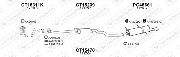 PEUGEOT 306 Kabriolet (7D, N3, N5) 1.6 - Výfukový systém - kompletní od 10/2000 do 4/2002, 1587 ccm, 72 kW, 98 hp, NFT (TU5JP), Kabriolet