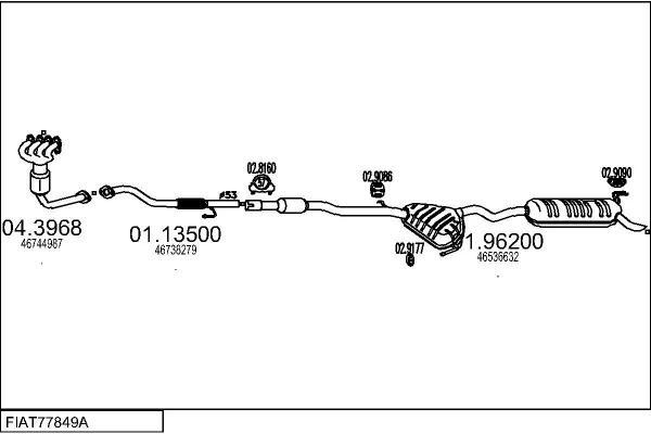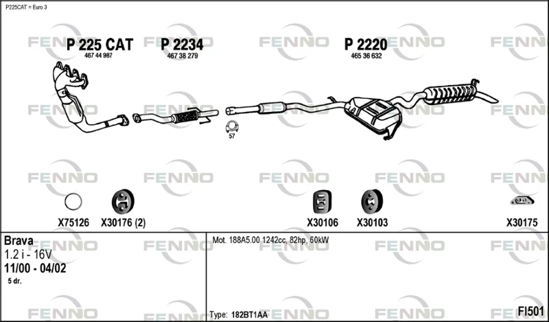 FIAT BRAVA (182_) 1.2 16V 80 - Výfukový systém - kompletní od 10/2000 do 10/2001, 1242 ccm, 59 kW, 80 hp, 188 A5.000, Šikmá zadní část