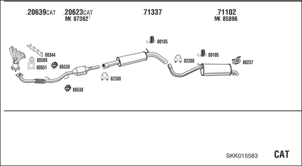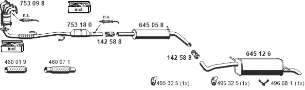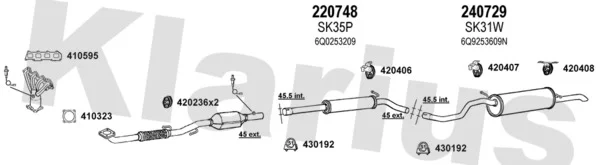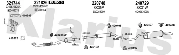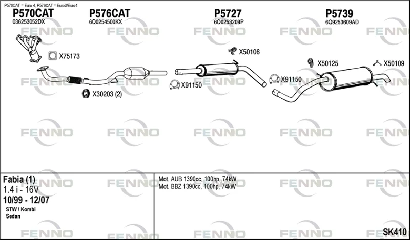 SKODA FABIA I Combi (6Y5) 1.4 16V - Výfukový systém - kompletní od 4/2000 do 12/2007, 1390 ccm, 74 kW, 100 hp, AUB, BBZ, kombi