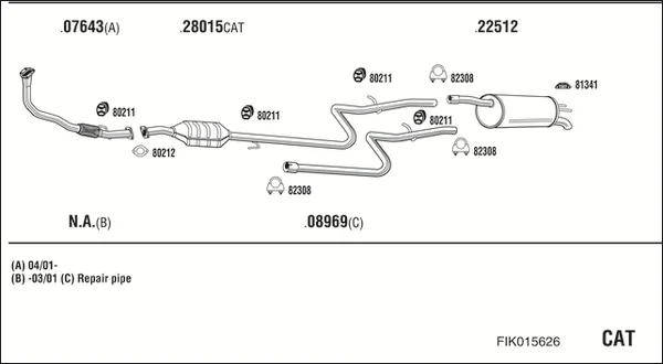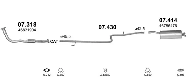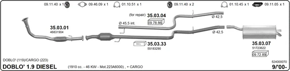 FIAT DOBLO velkoprostorová limuzína (119_, 223_) 1.9 D (223AXB1A) - Výfukový systém - kompletní od 3/2001, 1910 ccm, 46 kW, 63 hp, 223 A6.000, velkoprostorová limuzína