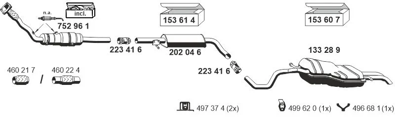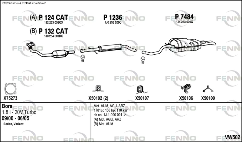 VW BORA Variant (1J6) 1.8 T - Výfukový systém - kompletní od 5/2000 do 5/2005, 1781 ccm, 110 kW, 150 hp, AGU, ARX, AUM, AWD, AWW, kombi