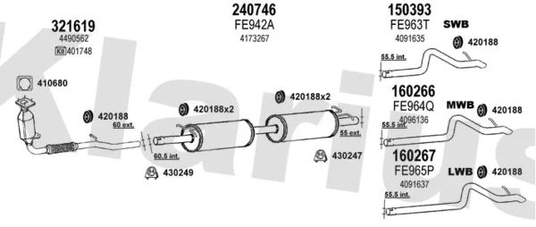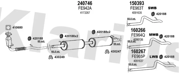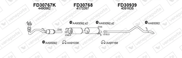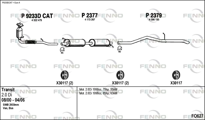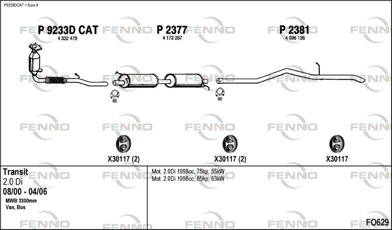 FORD TRANSIT autobus (FD_ _, FB_ _, FS_ _, FZ_ _, FC_ _) 2.0 DI (F_E_, F_F_, F_G_) - Výfukový systém - kompletní od 8/2000 do 5/2006, 1998 ccm, 55 kW, 75 hp, D3FA, autobus