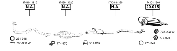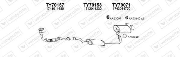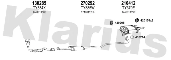 TOYOTA COROLLA Liftback (_E10_) 1.3 12V (EE100_, EE100R) - Výfukový systém - kompletní od 7/1992 do 5/1995, 1296 ccm, 53 kW, 72 hp, 2E, Šikmá zadní část