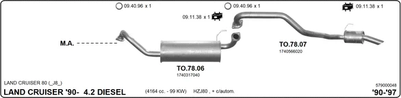 TOYOTA LAND CRUISER 80 (_J8_) 4.2 D (HZJ80, HZJ81) - Výfukový systém - kompletní