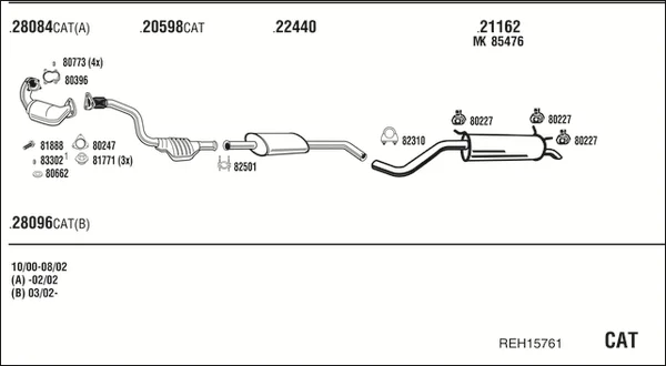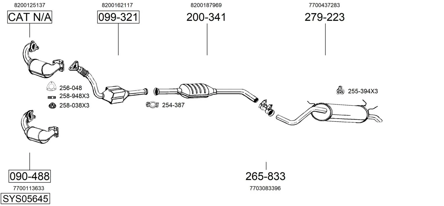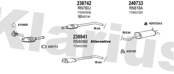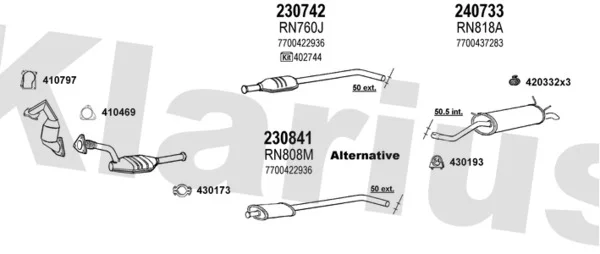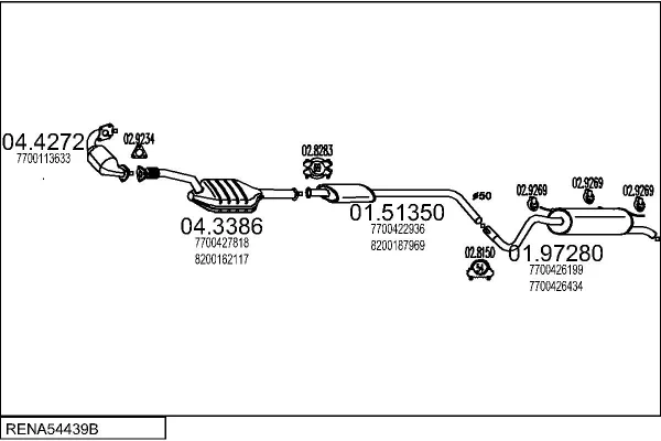 RENAULT MEGANE I (BA0/1_) 1.9 dCi (BA05, BA1F) - Výfukový systém - kompletní od 2/2001 do 8/2003, 1870 ccm, 75 kW, 102 hp, F9Q 732, F9Q 733, Šikmá zadní část