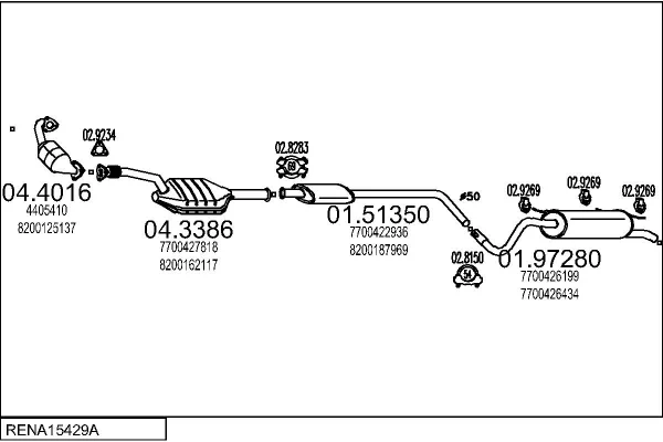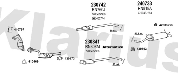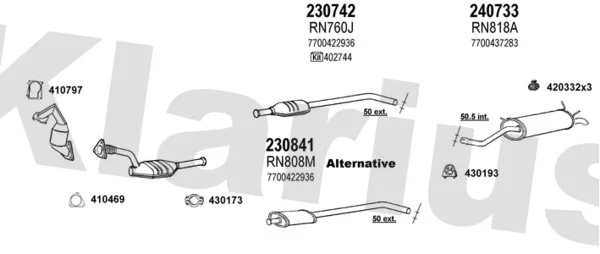 RENAULT SCÉNIC I velkoprostorová limuzína (JA0/1_, FA0_) 1.9 dCi (JA05, JA1F) - Výfukový systém - kompletní od 9/1999 do 8/2003, 1870 ccm, 75 kW, 102 hp, F9Q 732, F9Q 733, velkoprostorová limuzína