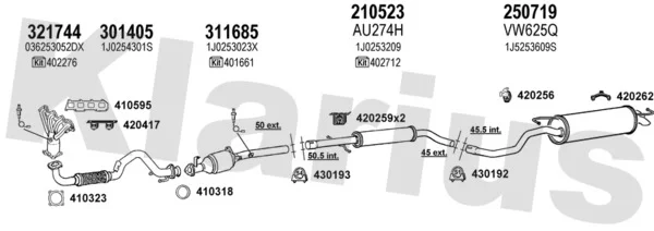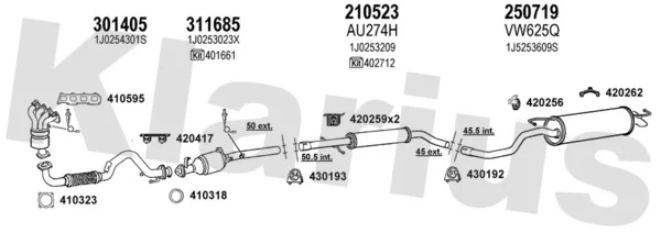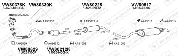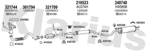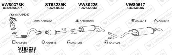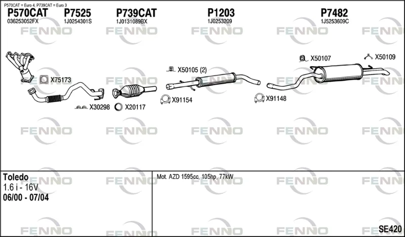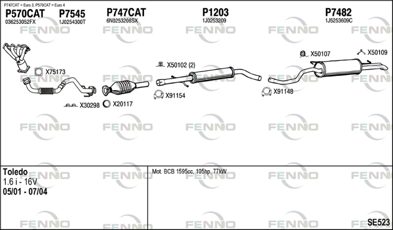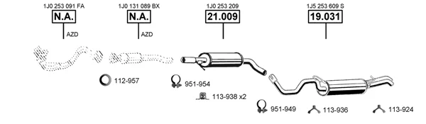SEAT TOLEDO II (1M2) 1.6 16V - Výfukový systém - kompletní od 6/2000 do 5/2006, 1598 ccm, 77 kW, 105 hp, AUS, AZD, BCB, limuzína