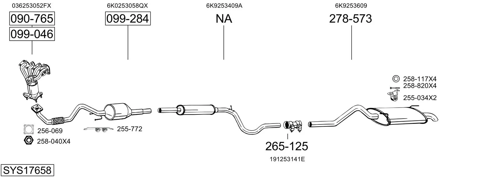 VW CADDY II Skříňová/velkoprostorová limuzína (9K9A) 1.4 - Výfukový systém - kompletní od 8/2000 do 1/2004, 1390 ccm, 55 kW, 75 hp, AUA, Skříňová/velkoprostorová limuzína