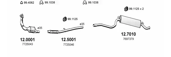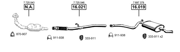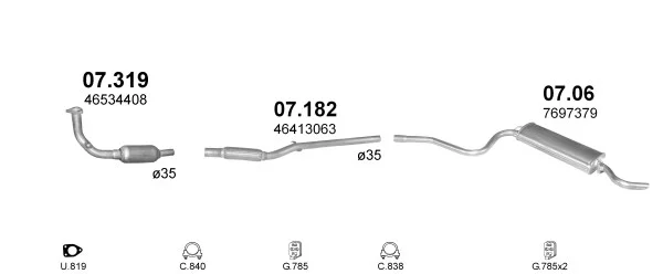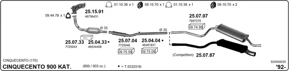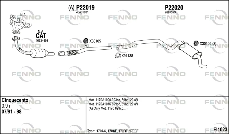 FIAT CINQUECENTO (170_) 0.9 i.e. (170AC) - Výfukový systém - kompletní od 7/1991 do 9/1994, 903 ccm, 30 kW, 41 hp, 170 A1.046, Šikmá zadní část