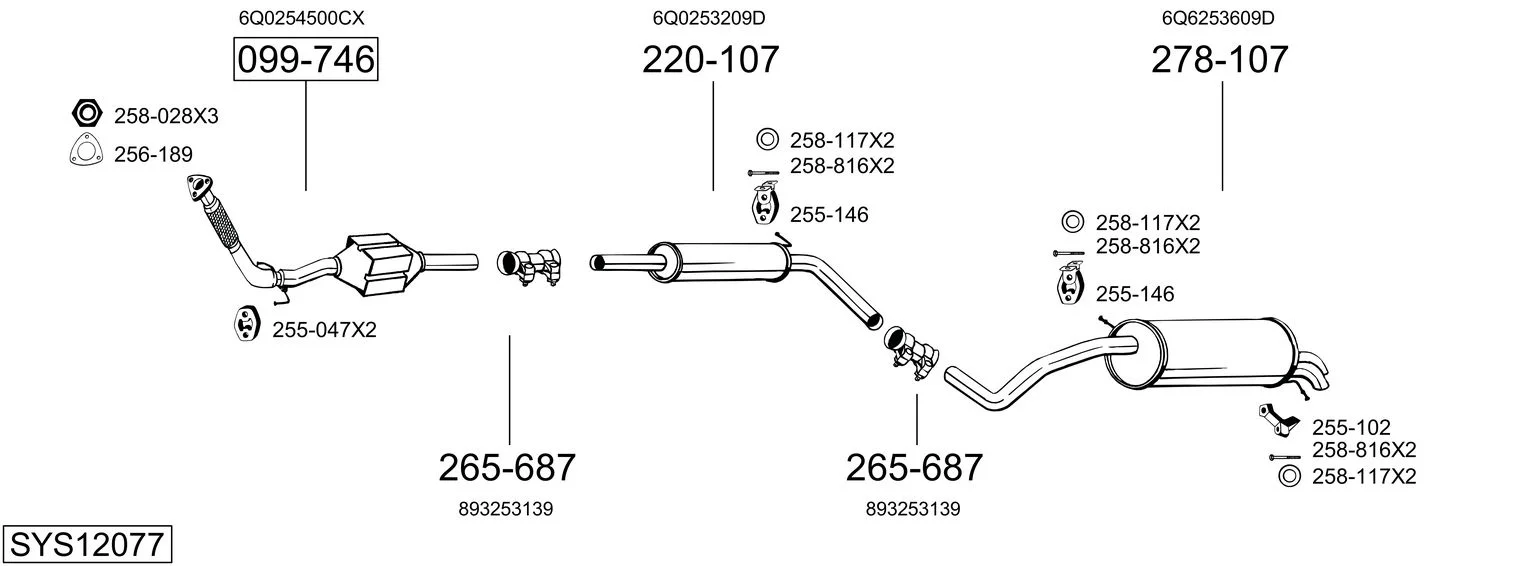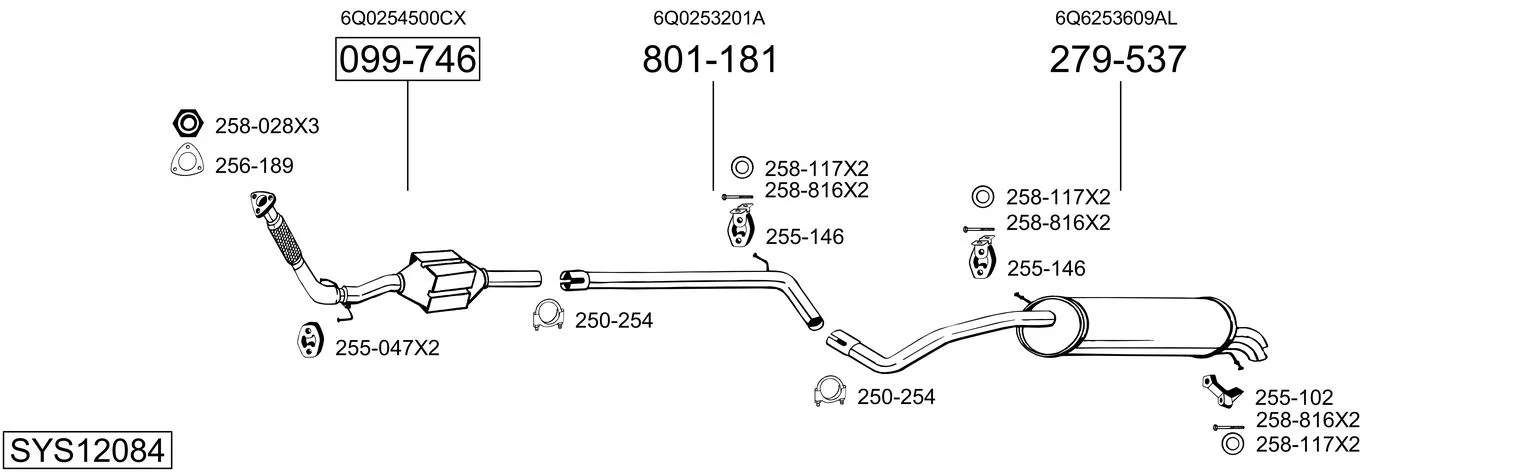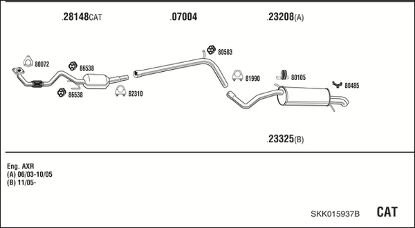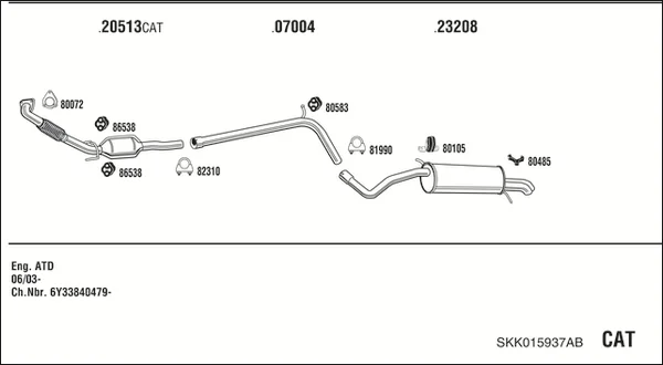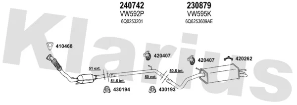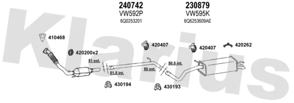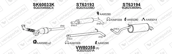 SKODA FABIA I limuzína (6Y3) 1.9 TDI - Výfukový systém - kompletní od 1/2000 do 12/2007, 1896 ccm, 74 kW, 100 hp, ATD, AXR, limuzína