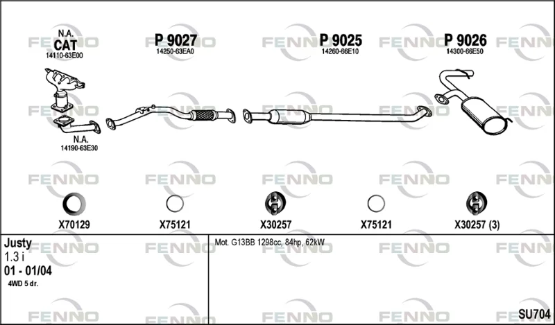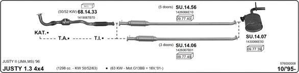 SUBARU JUSTY II (JMA, MS) 1.3 4x4 - Výfukový systém - kompletní od 4/2001 do 11/2003, 1298 ccm, 63 kW, 86 hp, G13BB, Šikmá zadní část