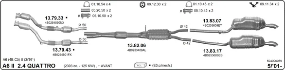 AUDI A6 C5 Avant (4B5, 4B6) 2.4 quattro - Výfukový systém - kompletní od 8/2001 do 1/2005, 2393 ccm, 125 kW, 170 hp, BDV, kombi
