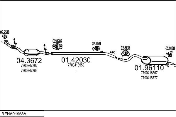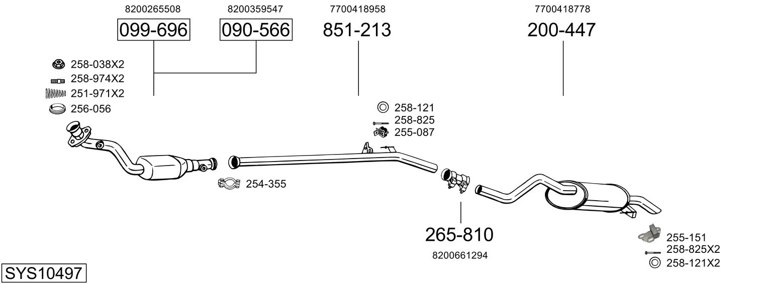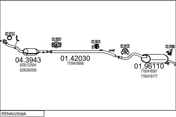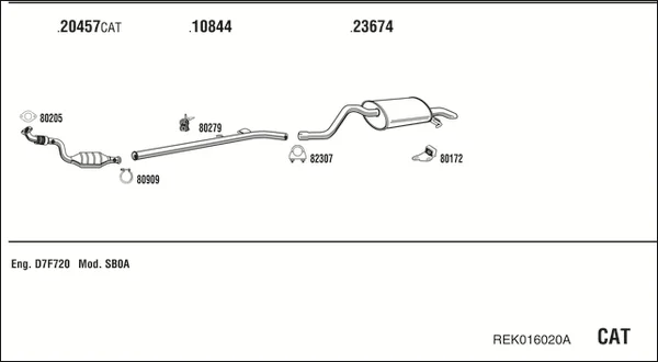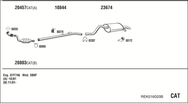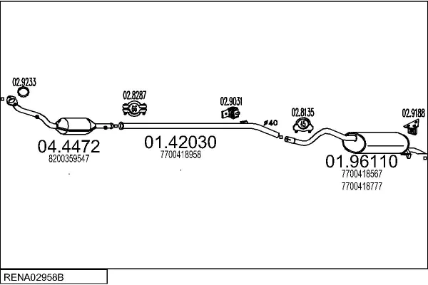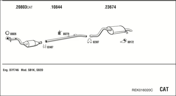 RENAULT CLIO II Schránky/šikmá záď (SB0/1/2_) 1.2 (SB0A, SB0F, SB1K, SB2D) - Výfukový systém - kompletní od 9/1998, 1149 ccm, 43 kW, 58 hp, D7F 720, D7F 726, D7F 746, Schránky/šikmá záď