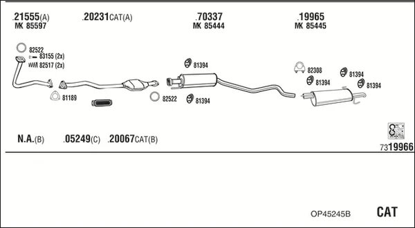 OPEL ASTRA F limuzína (T92) 1.6 (F19, M19) - Výfukový systém - kompletní od 9/1995 do 9/1998, 1598 ccm, 55 kW, 75 hp, 16 LZ2, 16 NZR, limuzína