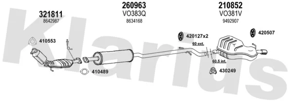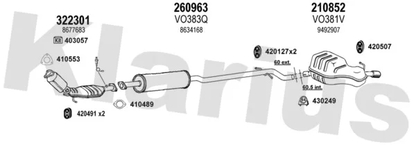 VOLVO S60 I (384) 2.4 T AWD - Výfukový systém - kompletní od 6/2001 do 4/2010, 2435 ccm, 147 kW, 200 hp, B 5244 T3, limuzína