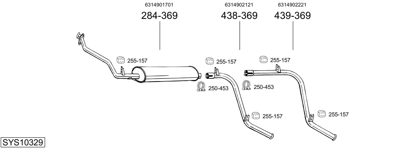 MERCEDES-BENZ MB valník/podvozek (W631) D (631.340) - Výfukový systém - kompletní od 2/1988 do 5/1992, 2399 ccm, 53 kW, 72 hp, OM 616.963, valník/podvozek
