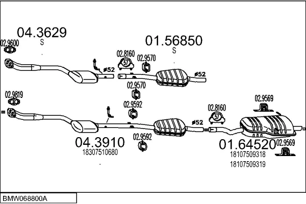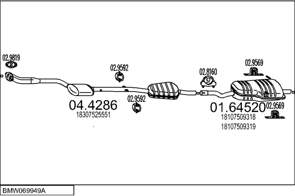 BMW 3 (E46) 318 i - Výfukový systém - kompletní od 9/2001 do 2/2005, 1995 ccm, 105 kW, 143 hp, N42 B20 A, N46 B20 A, N46 B20 C, limuzína