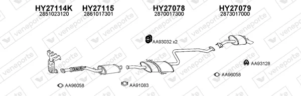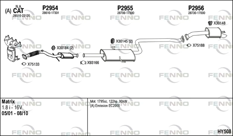 HYUNDAI MATRIX (FC) 1.8 - Výfukový systém - kompletní od 6/2001 do 8/2010, 1795 ccm, 90 kW, 122 hp, G4GB, velkoprostorová limuzína