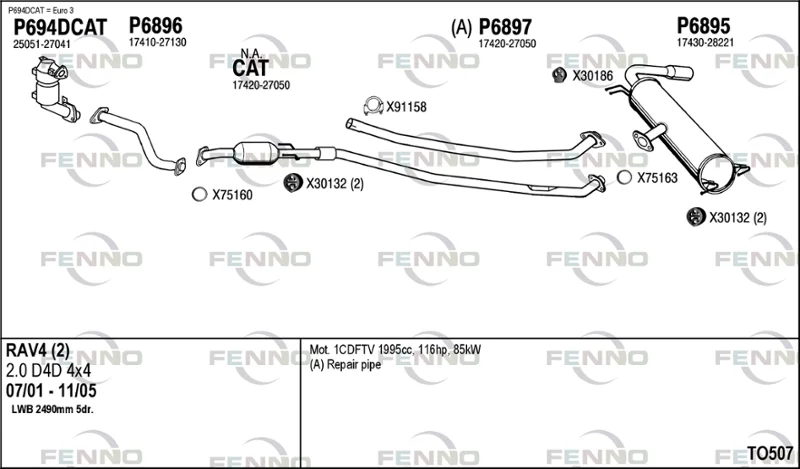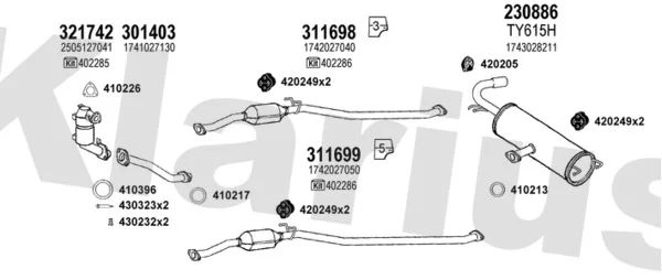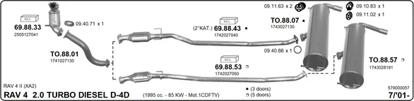 TOYOTA RAV 4 II (_A2_) 2.0 D 4WD (CLA20_, CLA21_, CLA20R, CLA21R) - Výfukový systém - kompletní od 5/2001 do 11/2005, 1995 ccm, 85 kW, 116 hp, 1CD-FTV, SUV