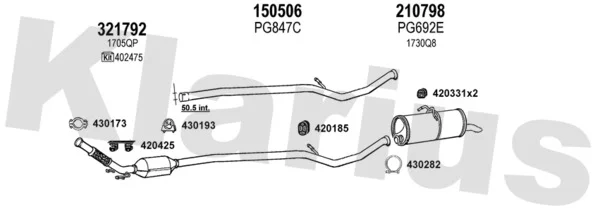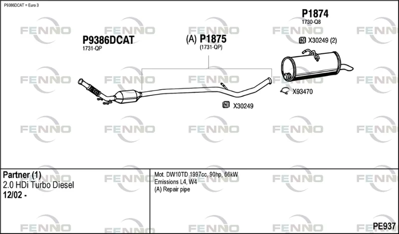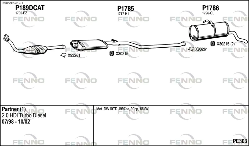 PEUGEOT PARTNER Skříňová/velkoprostorová limuzína (5_, G_) 2.0 HDi - Výfukový systém - kompletní od 4/2000 do 7/2008, 1997 ccm, 66 kW, 90 hp, RHY (DW10TD), Skříňová/velkoprostorová limuzína
