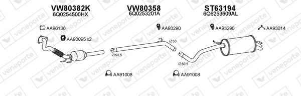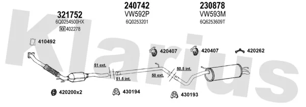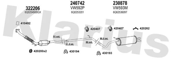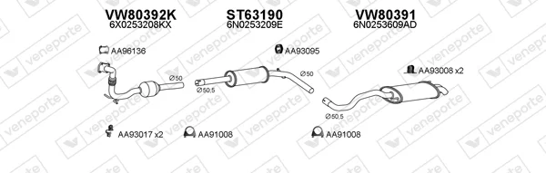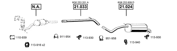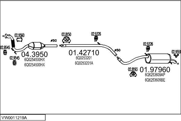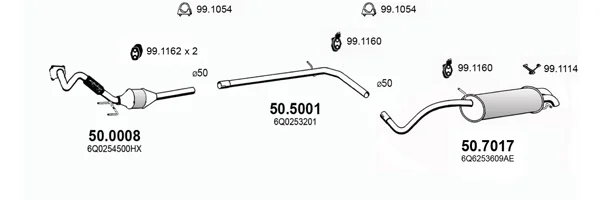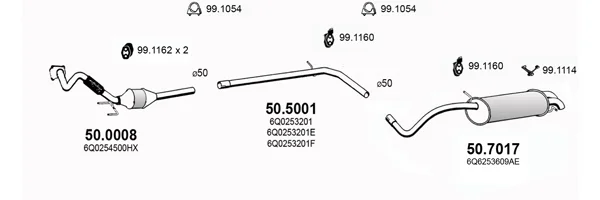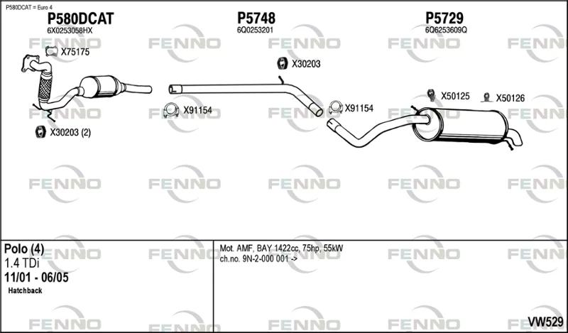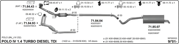 VW POLO IV (9N_, 9A_) 1.4 TDI - Výfukový systém - kompletní od 10/2001 do 6/2005, 1422 ccm, 55 kW, 75 hp, AMF, BAY, Šikmá zadní část