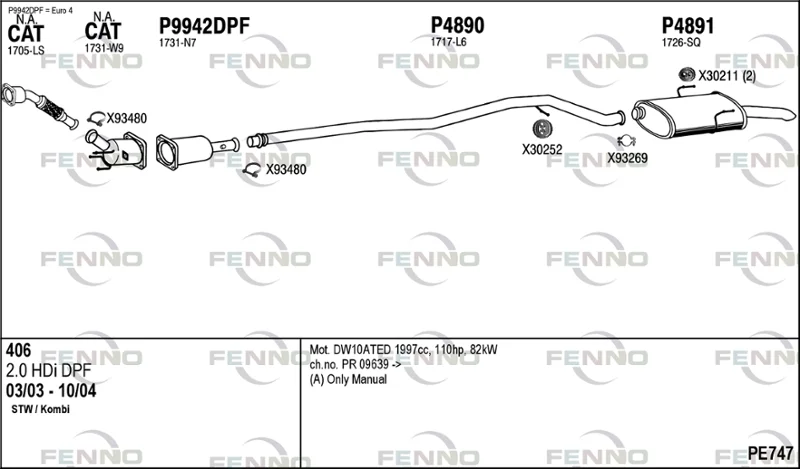 PEUGEOT 406 Break (8E/F) 2.0 HDi 110 - Výfukový systém - kompletní od 8/2001 do 10/2004, 1997 ccm, 79 kW, 107 hp, RHS (DW10ATED), RHZ (DW10ATED), kombi