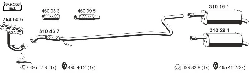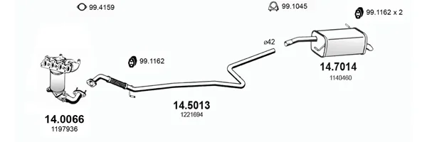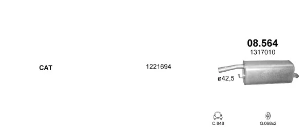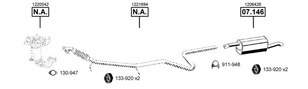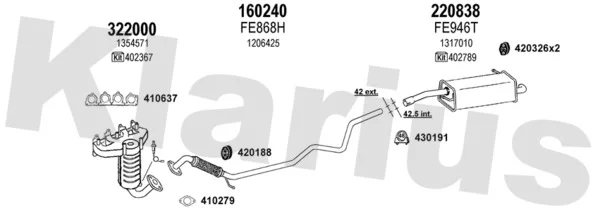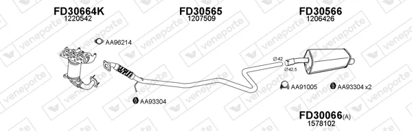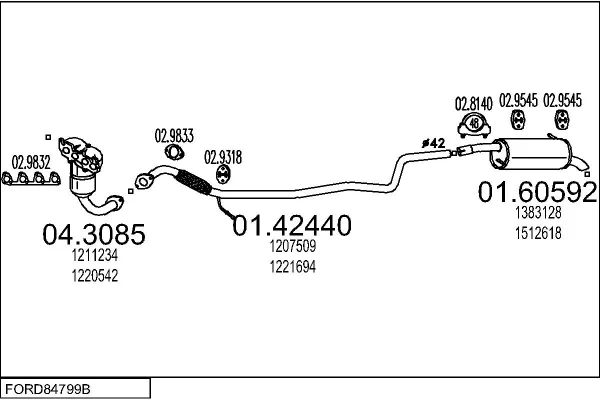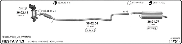 FORD FIESTA V (JH_, JD_) 1.3 - Výfukový systém - kompletní od 11/2001 do 6/2008, 1299 ccm, 51 kW, 69 hp, A9JA, A9JB, Šikmá zadní část