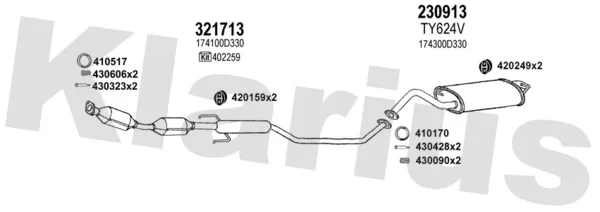 TOYOTA COROLLA kombi (_E12_) 1.6 VVT-i (ZZE121_, ZZE121R) - Výfukový systém - kompletní od 1/2002 do 8/2007, 1598 ccm, 81 kW, 110 hp, 3ZZ-FE, kombi