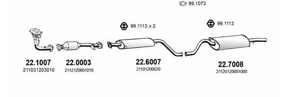 LADA 112 (2112) 1.5 - Výfukový systém - kompletní od 10/2000 do 12/2005, 1499 ccm, 56 kW, 76 hp, 2111, Šikmá zadní část
