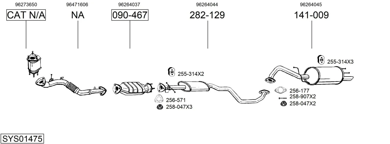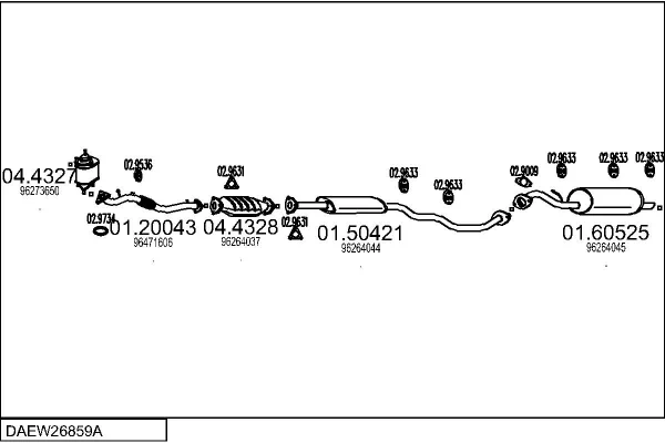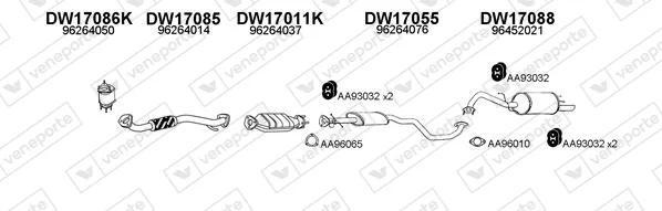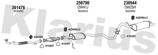 DAEWOO TACUMA (U100) 1.6 - Výfukový systém - kompletní od 9/2000, 1598 ccm, 77 kW, 105 hp, A16DMS, velkoprostorová limuzína