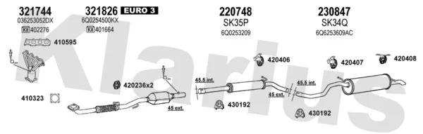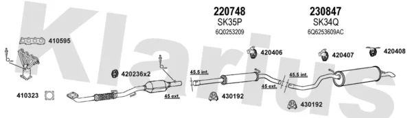 SEAT IBIZA III (6L1) 1.4 16V - Výfukový systém - kompletní od 2/2002 do 11/2009, 1390 ccm, 74 kW, 100 hp, AUB, BBZ, Šikmá zadní část