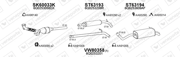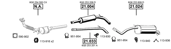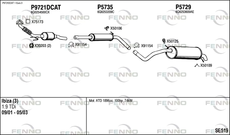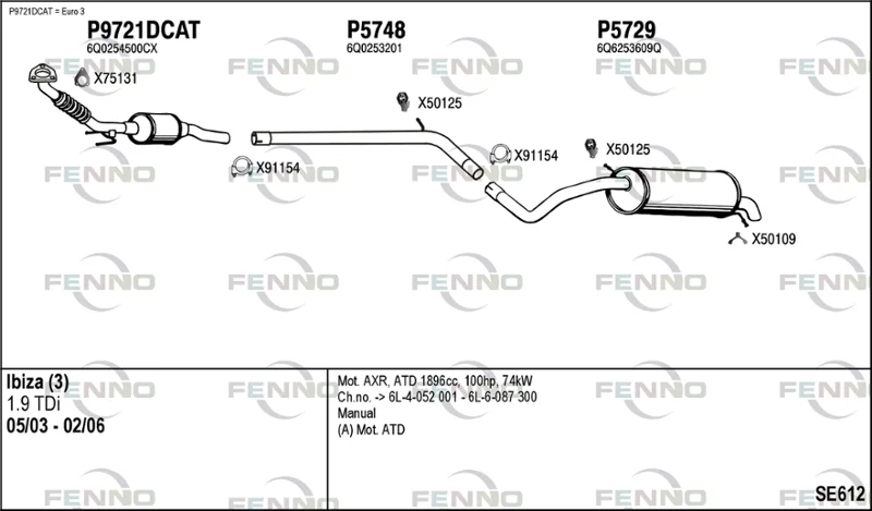 SEAT IBIZA III (6L1) 1.9 TDI - Výfukový systém - kompletní od 2/2002 do 11/2009, 1896 ccm, 74 kW, 100 hp, ATD, AXR, BMT, Šikmá zadní část
