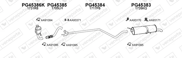 PEUGEOT 307 (3A/C) 1.4 HDi - Výfukový systém - kompletní od 10/2001 do 6/2005, 1398 ccm, 50 kW, 68 hp, 8HX (DV4TD), 8HZ (DV4TD), Šikmá zadní část