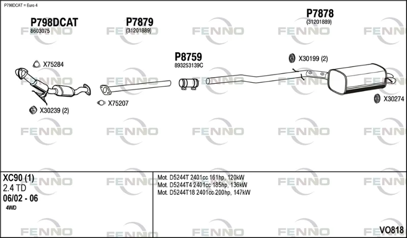 VOLVO XC90 I (275) D5 AWD - Výfukový systém - kompletní od 10/2002 do 12/2006, 2401 ccm, 120 kW, 163 hp, D 5244 T, SUV