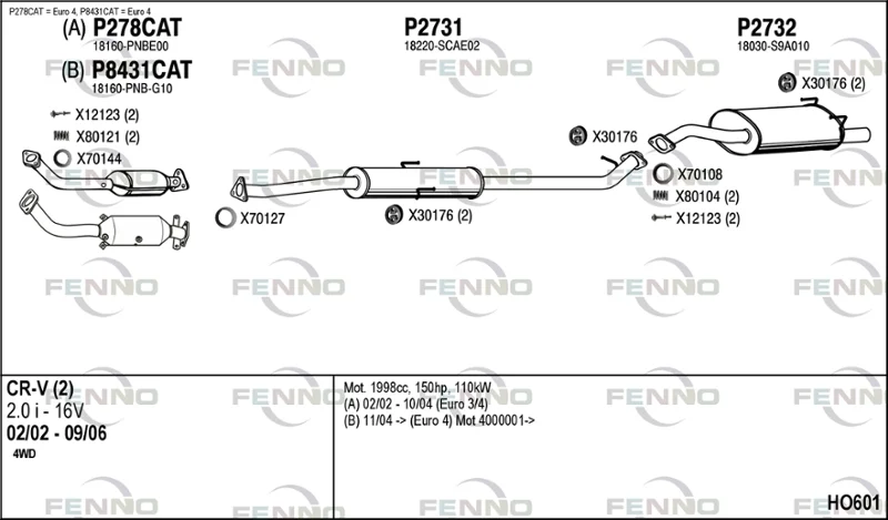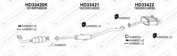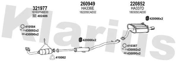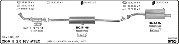 HONDA CR-V II (RD_) 2.0 (RD5) - Výfukový systém - kompletní od 9/2001 do 3/2007, 1998 ccm, 110 kW, 150 hp, K20A4, SUV