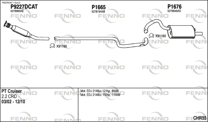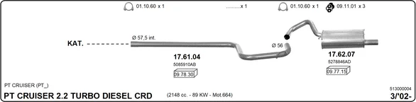 CHRYSLER PT CRUISER (PT_) 2.2 CRD - Výfukový systém - kompletní od 3/2002 do 12/2010, 2148 ccm, 89 kW, 121 hp, EDJ, kombi