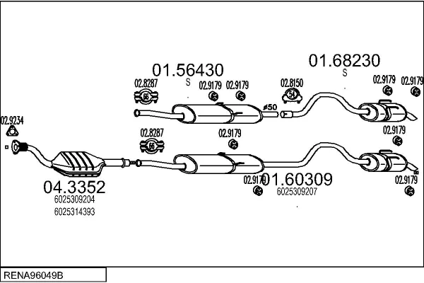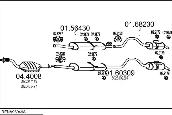 RENAULT ESPACE III (JE0_) 2.0 - Výfukový systém - kompletní od 9/2001 do 10/2002, 1998 ccm, 102 kW, 139 hp, F4R 700, F4R 701, velkoprostorová limuzína