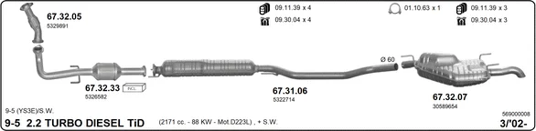 SAAB 9-5 (YS3E) 2.2 TiD - Výfukový systém - kompletní od 3/2002 do 12/2009, 2171 ccm, 88 kW, 120 hp, D223L, limuzína
