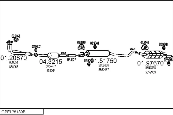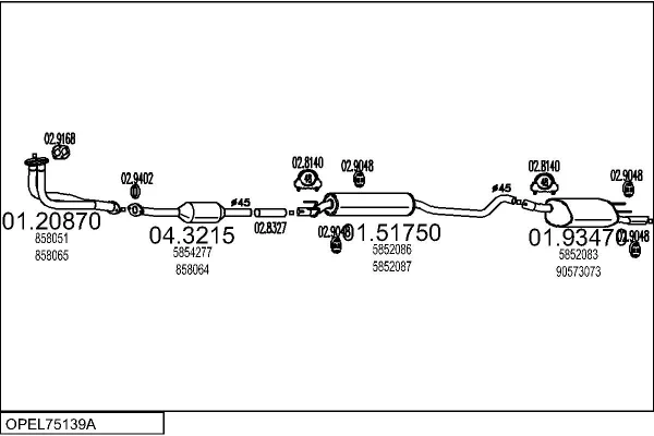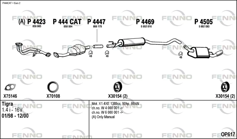 OPEL TIGRA (S93) 1.4 16V (F07) - Výfukový systém - kompletní od 8/1997 do 12/2000, 1389 ccm, 63 kW, 86 hp, X 14 XE, kupé