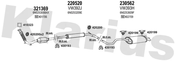 VW POLO III (6N1) 1.7 SDI - Výfukový systém - kompletní od 4/1997 do 10/1999, 1716 ccm, 42 kW, 57 hp, AHG, Šikmá zadní část