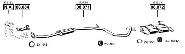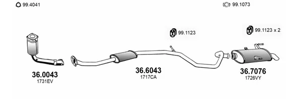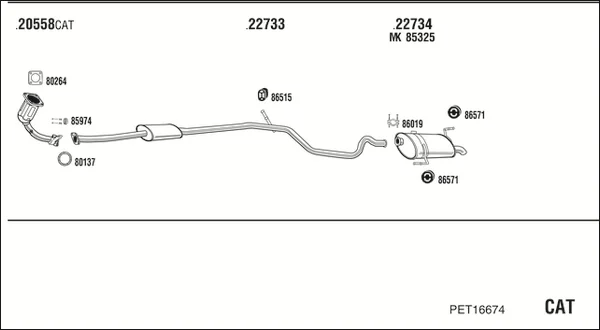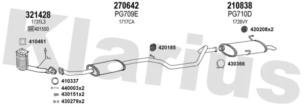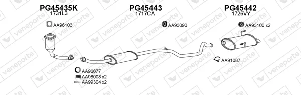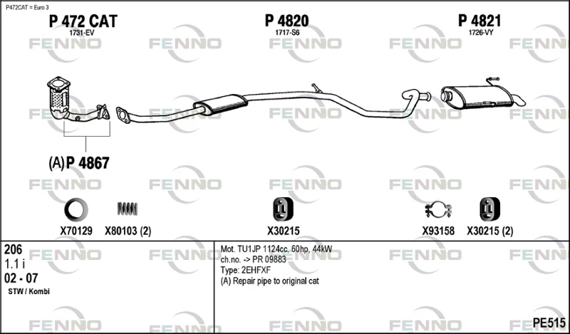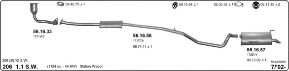 PEUGEOT 206 SW (2E/K) 1.1 - Výfukový systém - kompletní od 7/2002 do 2/2007, 1124 ccm, 44 kW, 60 hp, HFX (TU1JP), kombi