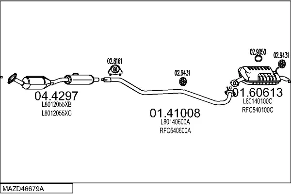 MAZDA 6 limuzína (GG) 1.8 - Výfukový systém - kompletní od 8/2002 do 8/2007, 1798 ccm, 88 kW, 120 hp, L8-DE, L813, L829, limuzína