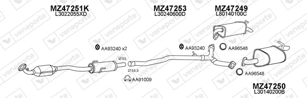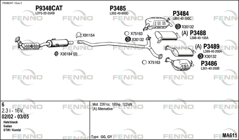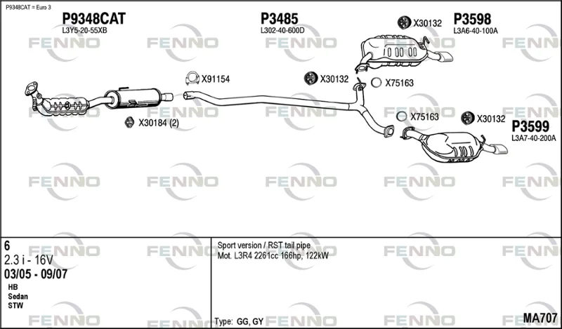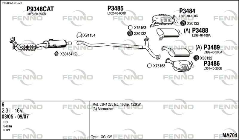 MAZDA 6 Station Wagon (GY) 2.3 (GY3W, GY10) - Výfukový systém - kompletní od 1/2002 do 2/2008, 2261 ccm, 122 kW, 166 hp, L3-VE, L3C1, kombi