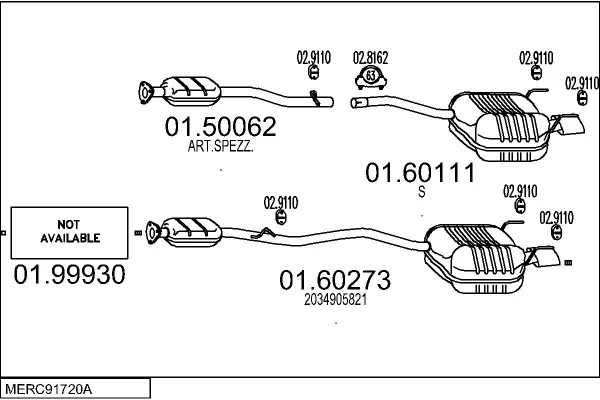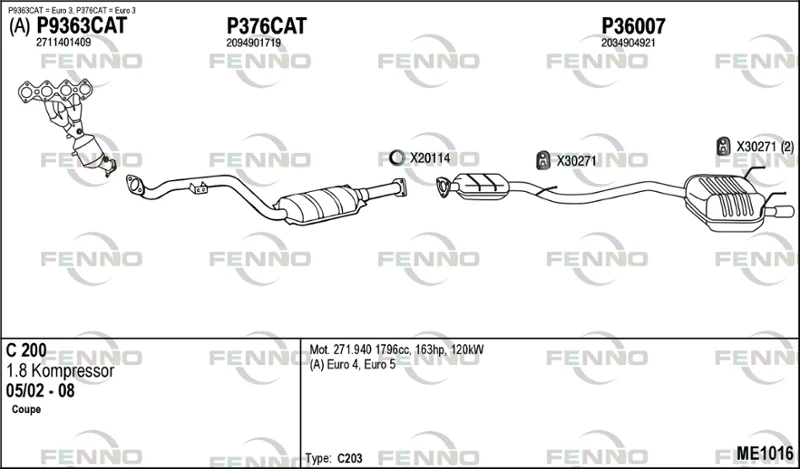 MERCEDES-BENZ C-CLASS kupé (CL203) C 200 Kompressor (203.742) - Výfukový systém - kompletní od 5/2002 do 5/2008, 1796 ccm, 120 kW, 163 hp, M 271.940, kupé